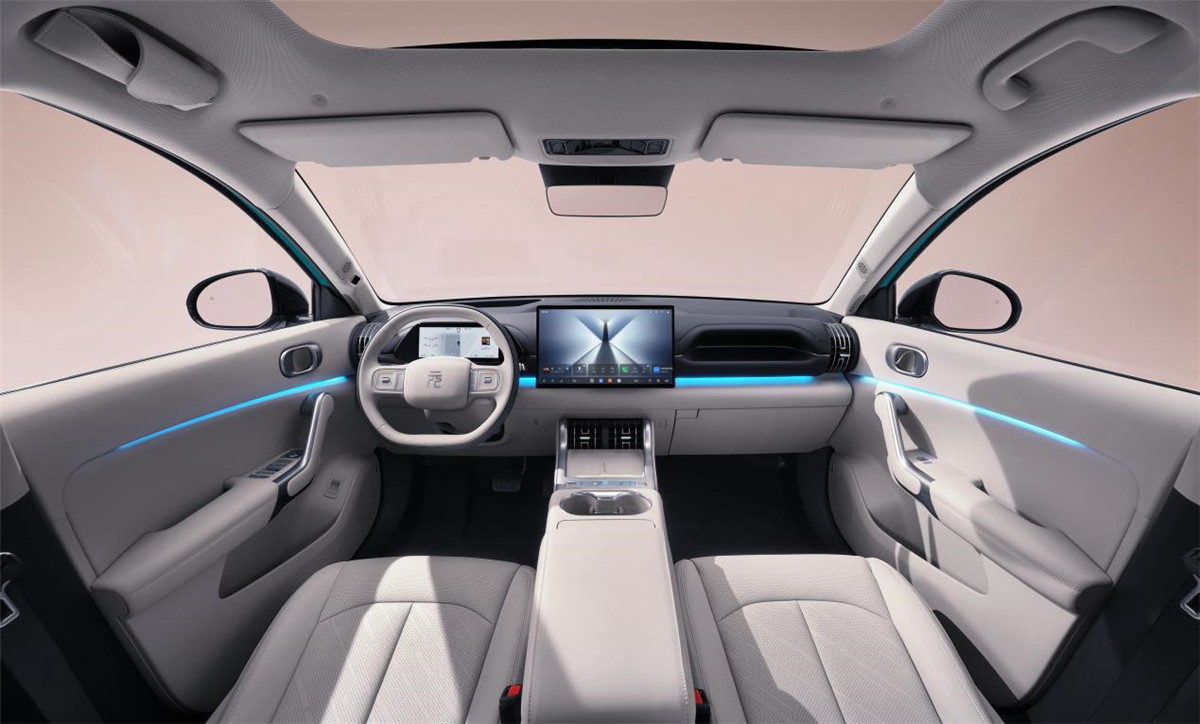 但设计师显然不想让它看起来像个笨重的大盒子。为了保持元PLUS系列一贯的灵动感,他们用了不少“视觉戏法”。比如,流畅的腰线、与车身同色的轮眉,以及一条贯穿式的侧裙线,这些线条有效“切割”了车身的厚重感。标志性的刀锋D柱和悬浮式车顶得以保留,从侧面看,整台车依然显得很轻盈。车尾的变化比较明显,新的环抱式形面和被称为“能量回路”的尾灯,在晚上点亮后辨识度会更高。轮毂提供了18寸和19寸两种选择,样式也更运动。