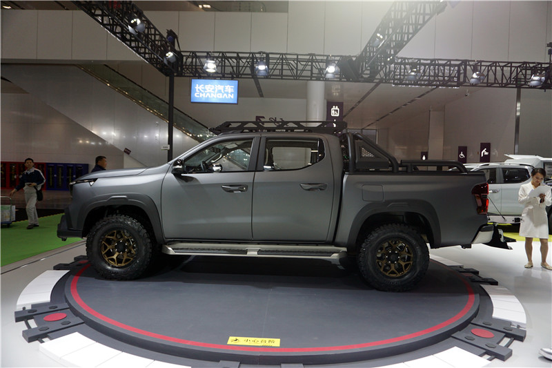 除了长安峰景·征程者,长安猎手还展示了另外两款改装车,其中一款是针对长安猎手的外观进行改造,叫长安猎手整体外观改装车,该车以皮卡车多功能设计为主,增强越野性为辅的设计理念,打造皮卡车以结合无人机多用途为特色的全地形、全域化的多功能移动平台。