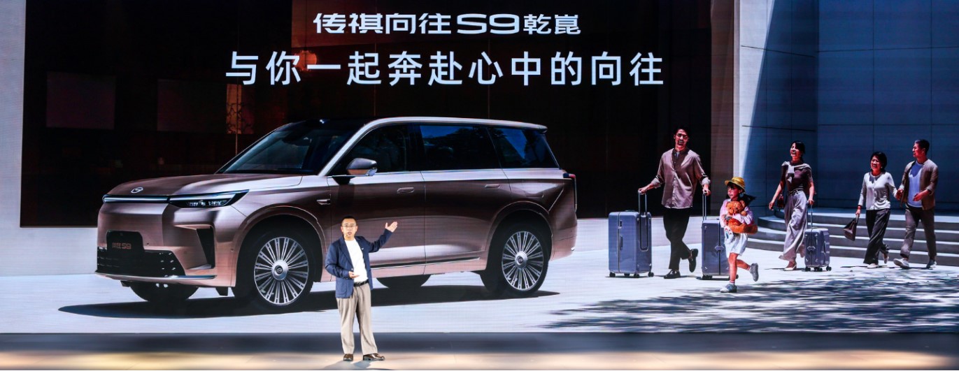 9月19日,传祺向往S9乾崑上市发布会在广汽集团广州番禺总部举行。以华为乾崑、宁德时代、智电四驱三大全系标配、全员满配的舒享关怀及广汽大厂的品质保障,传祺向往S9乾崑成为22万级唯一标配智电三大件的华系插混“王”,是家庭幸福生活进阶首选。
