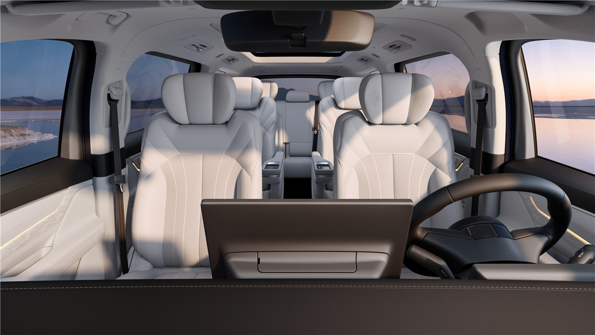 银河V900的舒适座舱媲美飞机头等舱。6座、8座版车型三排支持180°一键躺平,7座版三排靠背最大137°可调,搭配“云感SPA座椅”的11层结构设计与慢回弹记忆海绵,实现肩背腰臀全域贴合支撑。全车座椅配备通风、加热功能,主副驾及二排配备SPA级8点按摩功能,更有0压腿托与睡眠头枕加持,座座皆享越级舒适体验。