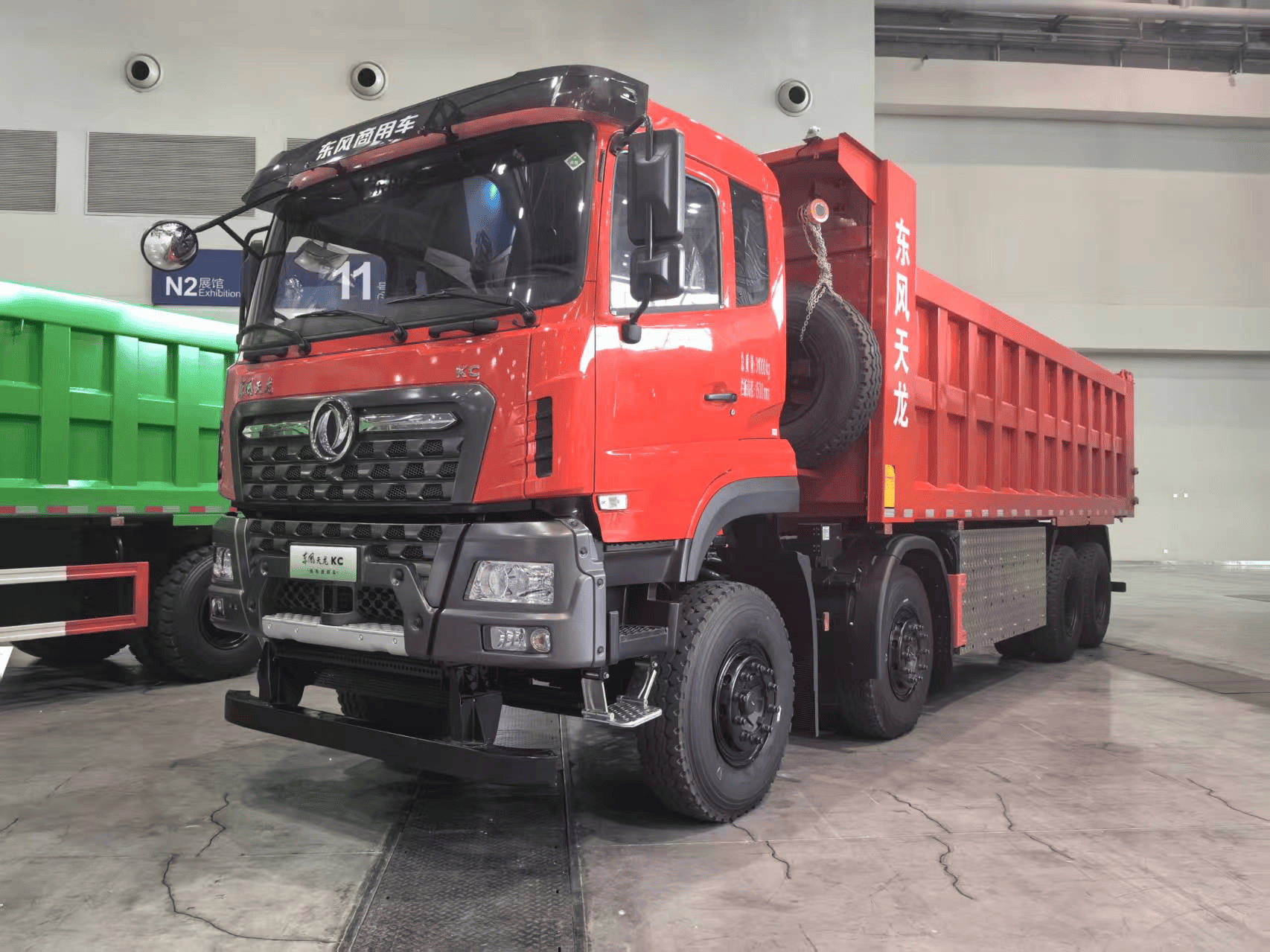 除上述新能源产品外,年会现场东风商用车亦展出了两款传统能源自卸车。东风天龙KC王者自卸车聚焦高原渣土、砂石料重载场景,搭载东康600马力发动机,最大扭矩2750牛米,匹配法士特13挡变速箱与汉德桥,强悍配置适配极端工况重载需求。