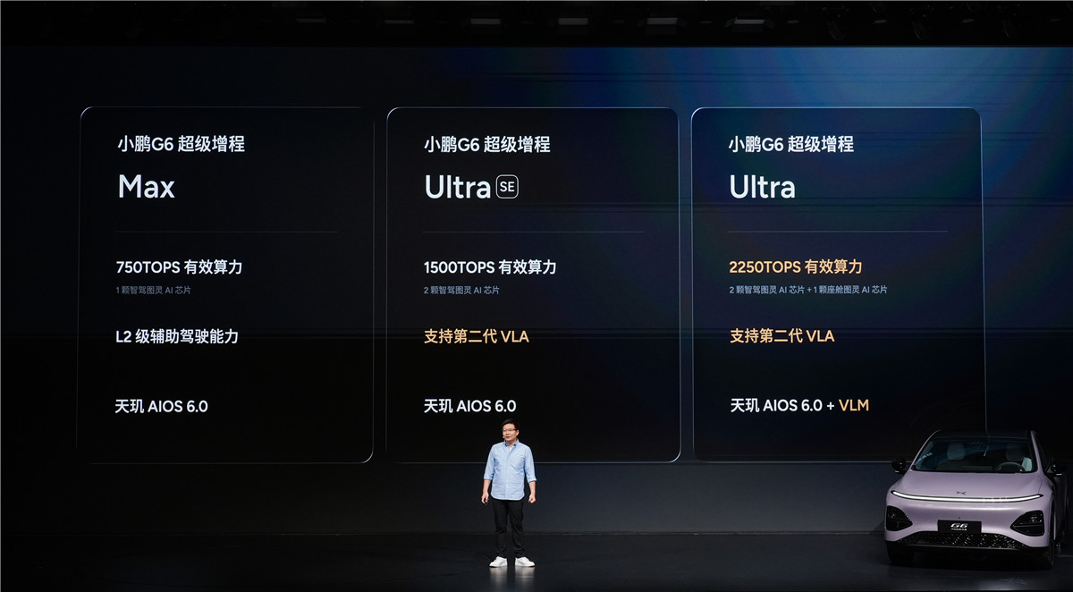 为实现高阶智驾,小鹏G6超级增程拥有同级第一的车端有效算力,整车算力至高可达2250TOPS。不同版本通过搭载1至3颗不等的“图灵AI芯片”来提供差异化的算力支持,但均能适配全场景智能驾驶需求。强大的硬件预埋为软件功能的持续迭代和体验升级提供了坚实底座。
