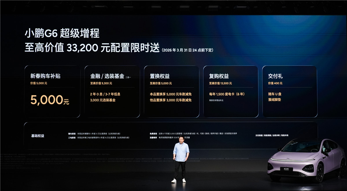 小鹏G6超级增程的起售价定格在18.68万元,这一价格精准锚定了主流年轻家庭购车的核心预算区间。发布会上,小鹏汽车并未止步于一个吸引眼球的起售价,更同步推出了至高价值33,200元的限时权益礼包,包含购车补贴、金融/选装基金、置换与复购权益等,进一步降低了用户的拥有门槛。新车提供Max基础版,并可选装12,000元升级至Ultra SE版,或20,000元升级至Ultra版,形成了清晰且灵活的产品梯度。