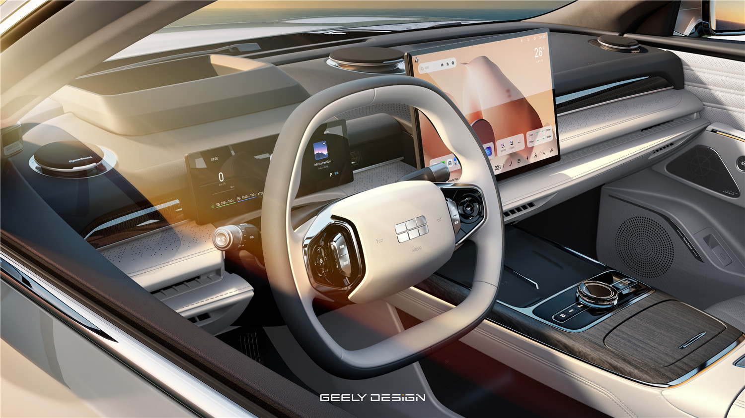 颜值设计,确实有自己的一套。美丑因人而异,但星耀8远航家这次新增的“日照金”和“丹霞矿”两种颜色确实花了心思。一个像朝阳一样闪耀,一个像丹霞地貌般会随光线变色,很有质感。内饰用了新的麂皮材质,摸起来柔软高级。整体设计是吉利的“涟漪美学”,有很多中式元素的细节,比如像“三潭印月”的音响面板,看起来挺有东方韵味,在设计和质感上,它做到了让人眼前一亮。