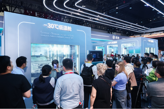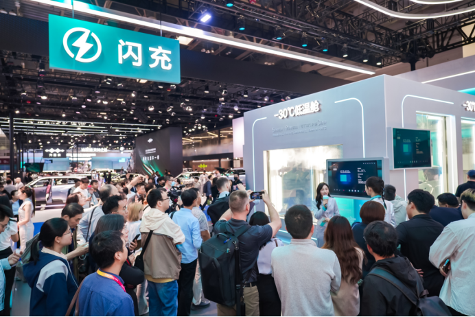 “闪充”想解决所有焦虑:在电动车的补能体验区,比亚迪亮出了他们的“王炸”组合:第二代刀片电池和闪充技术。他们喊出的口号很直接:“充电和加油一样快”。具体数据是:常温下,5分钟快速补能,9分钟基本“吃饱”;即便在零下30度的低温环境,也只是多花3分钟。现场还做了低温充电实测,看起来很直观。为了配合这个技术,比亚迪已经在国内311个城市建成了超过5400座闪充站,布局速度很快。
