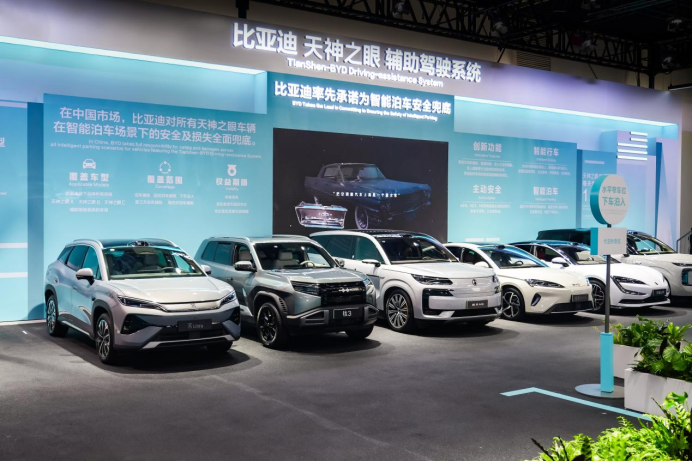 “天神之眼”越用越聪明:在智能驾驶体验区,比亚迪展示了最新的“天神之眼5.0”系统。官方说它在安全、驾驶拟人化和通行效率上都是行业领先,甚至敢为智能泊车的安全“兜底”,这份自信挺难得的。更关键的是数据,截至4月中旬,搭载比亚迪辅助驾驶的车已经超过285万辆,每天能产生超过1.8亿公里的驾驶数据。这意味着,这套系统真的在“活”在路上学习,理论上会“越用越好开”。