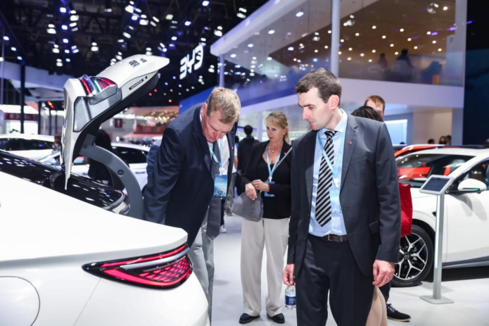 最逗的是,还有很多海外观众和媒体,围着车子和技术区各种体验、疯狂拍照,嘴里不停念叨“Chinese EV is amazing!”(中国电动车太牛了!)、“BYD number one!”,这波文化输出,属实到位了。