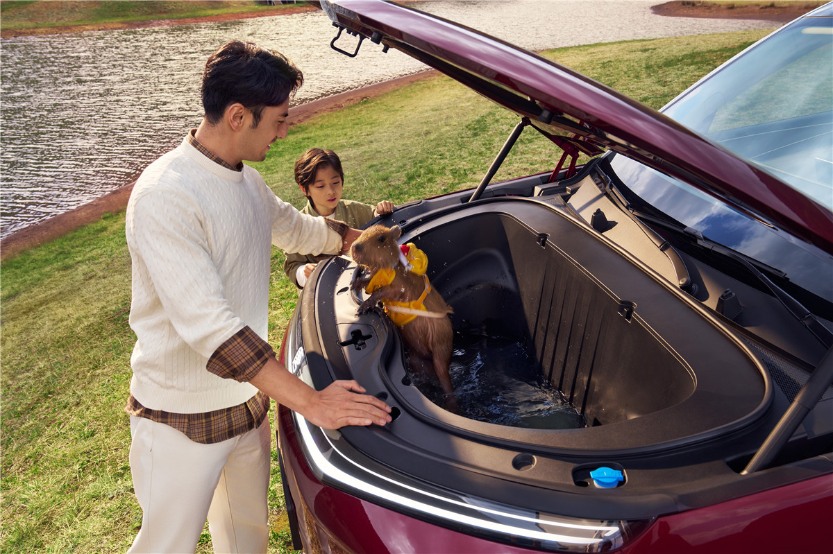 数据更能说明问题:大唐号称拥有同级第一的89.3%“得房率”和6.34平方米的“套内面积”。抛开这些房地产术语,实际体验就是,它的第三排是真正能舒适乘坐成年人的“正座”,而不是临时加座。二排中央过道宽度有201mm,成年人也能从容通过。更实用的是,即使在满员7人的状态下,它的前后备箱依然能装下10个20英寸的登机箱。全车47处储物空间,外加一个252L的电动前备箱,对于喜欢露营、钓鱼或者有娃的家庭来说,这种装载能力太有吸引力了。它解决了一个核心痛点:买七座车,不是为了偶尔用,而是为了能让全家每个人,包括坐在第三排的家人,都能舒舒服服地一起出行,不用“将就”。