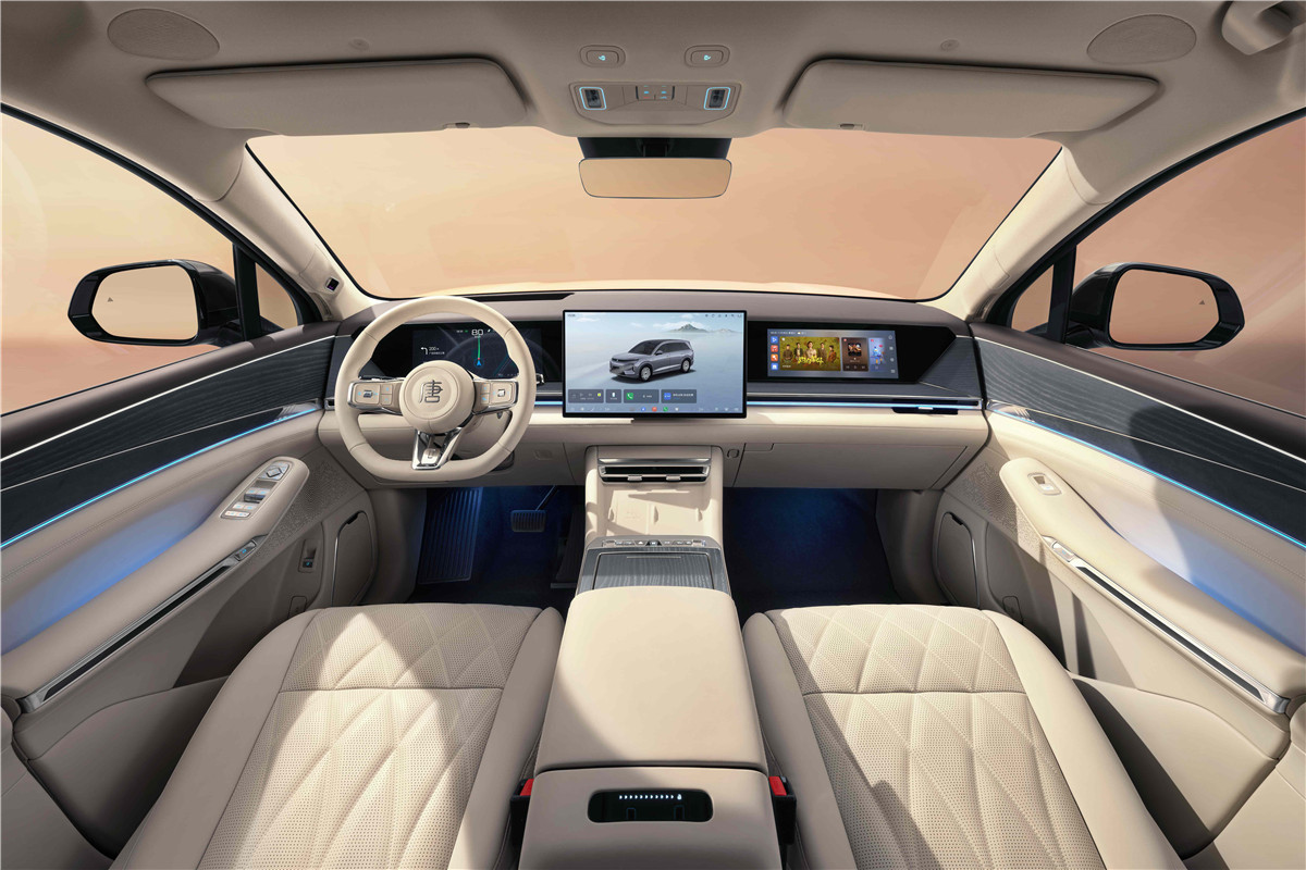 底盘上,云辇-A双腔空气悬架配合道路预瞄功能,可以根据路面状况实时调整悬架软硬和高低。过减速带或坑洼路面时,底盘能像一只“温柔的大手”托住车身,有效过滤颠簸,提升乘坐舒适性。这一套组合拳下来,大唐的目标很明确:既要让你跑得远、充得快,也要让你开得爽、坐得稳,不让“大尺寸”成为舒适和便捷的负担。