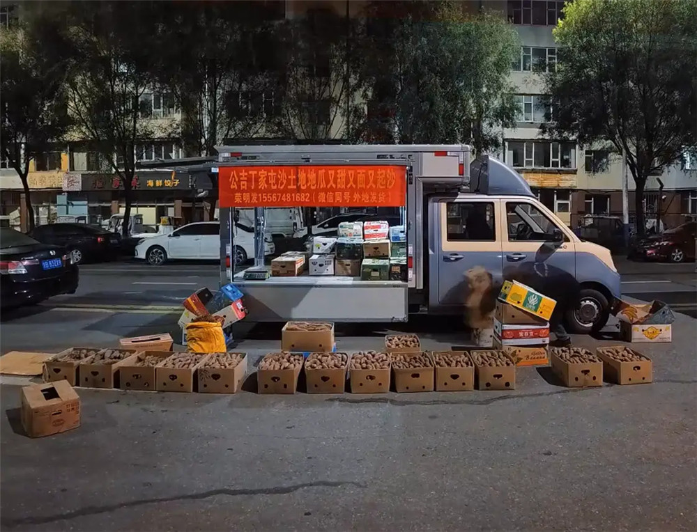 这辆看似普通的货车,却意外成为了早市里的焦点。“老多人问我,哎呀,你整个啥车嘛?”荣明发笑着说,“我说这是货车箱货,他们都不懂。”作为吉林省首台祥菱Q气体机车型,它吸引了不少好奇的目光,也成为了荣明发生意上的得力助手。他不仅卖红薯,还兼职做膨化食品生意,多功能的车辆设计,让他能够灵活应对不同的货物需求,翼展箱体不仅美观,是天然展台,更兼具装卸货等考量。这种多功能性,恰恰契合了中国小商贩多元化经营的实际需求,他们往往不会局限于单一商品,而是随着季节和市场变化灵活调整经营内容。