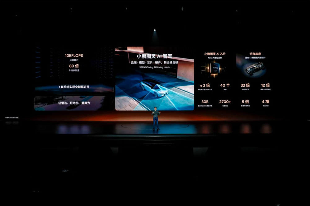 智驾领域,小鹏汽车自动驾驶品牌正式升级为“小鹏图灵AI智驾”。该体系以AI大模型为核心,涵盖了自研的云端和车端大模型、面向大模型开发的AI芯片和底层架构。