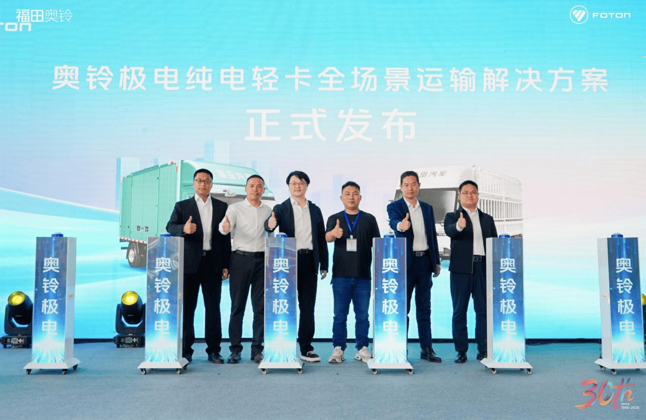 发布仪式上,北汽福田奥铃事业部营销副总裁陈岩、北汽福田奥铃事业部研发副总裁韩磊、北汽福田工程研究总院轻卡技术中心副主任姜松林、宁德时代大客户总监刘军标、卓邦物流总经理刘佳共同宣布,奥铃极电正式登陆洛阳市场,为河南用户带来更可靠、更高效的纯电运力选择。